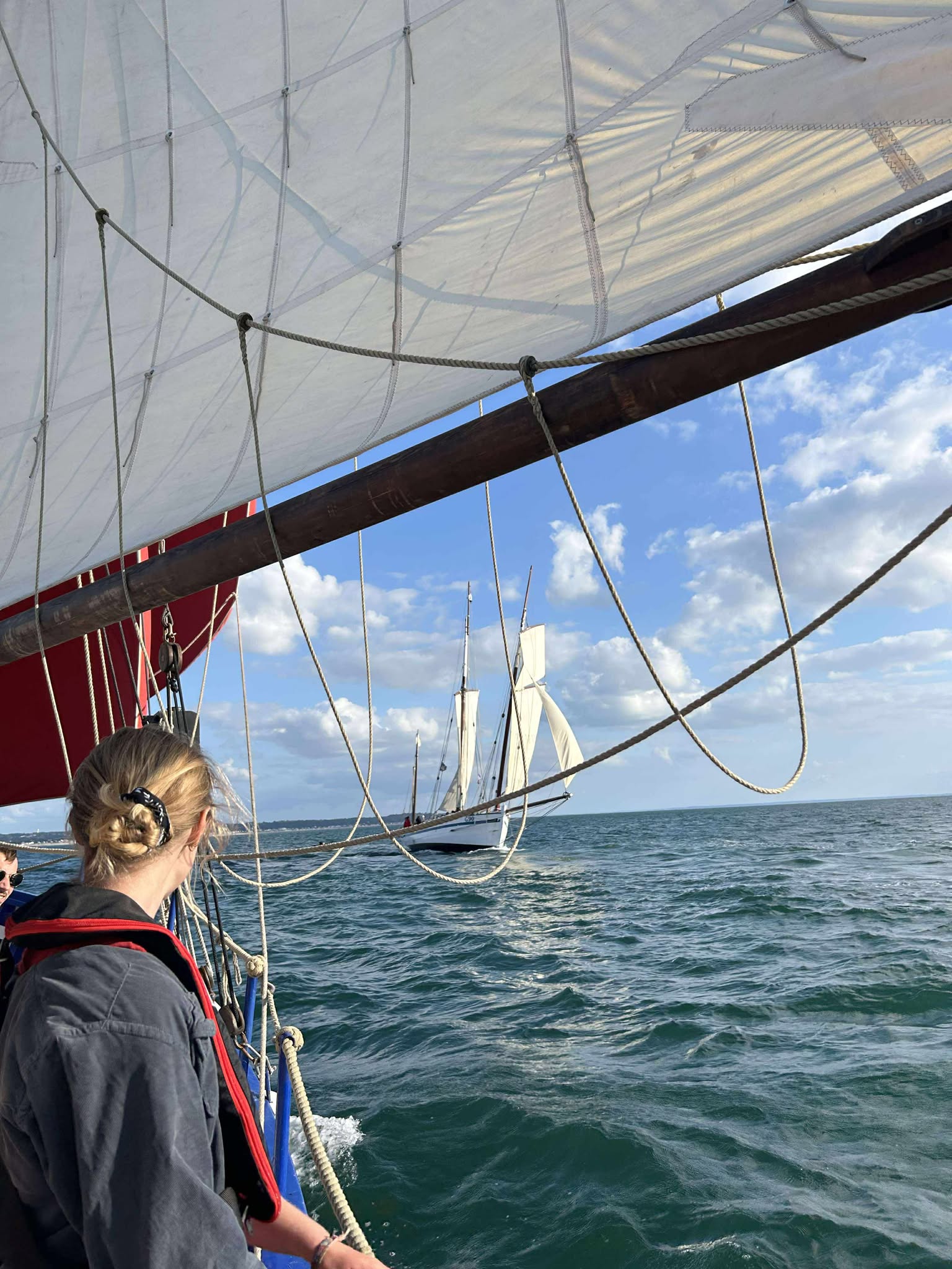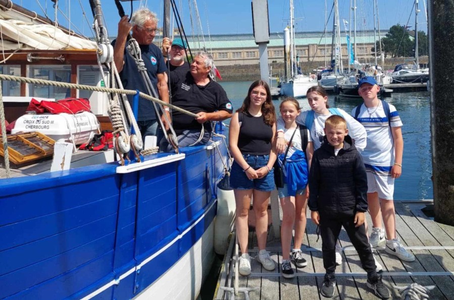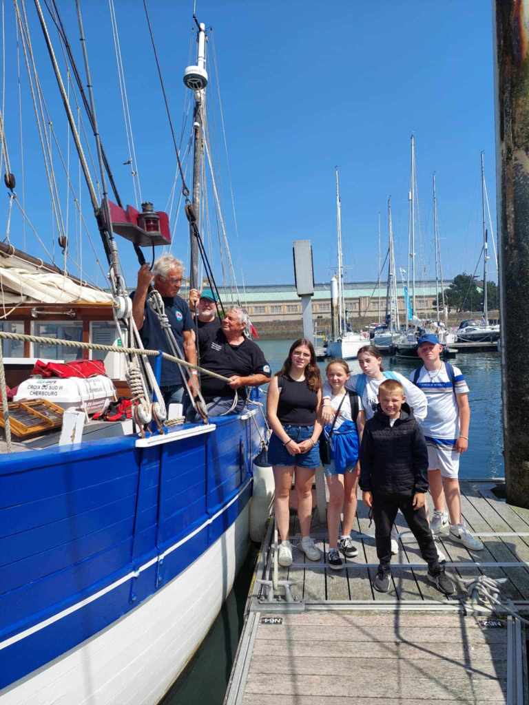 Hier vendredi, Gérard, Francis et Jean-Louis ont accueilli les jeunes du pôle jeunesse de la ville de Cherbourg en Cotentin à bord de la Croix du Sud III pour une sortie au large de Cherbourg. Un bel après-midi passé sur l’eau par ce groupe d’enfants heureux de découvrir la navigation sur un bateau en bois alors que les concurrents présents au pré-départ de la Fastnet continuaient leur préparation à port Chantereyne.