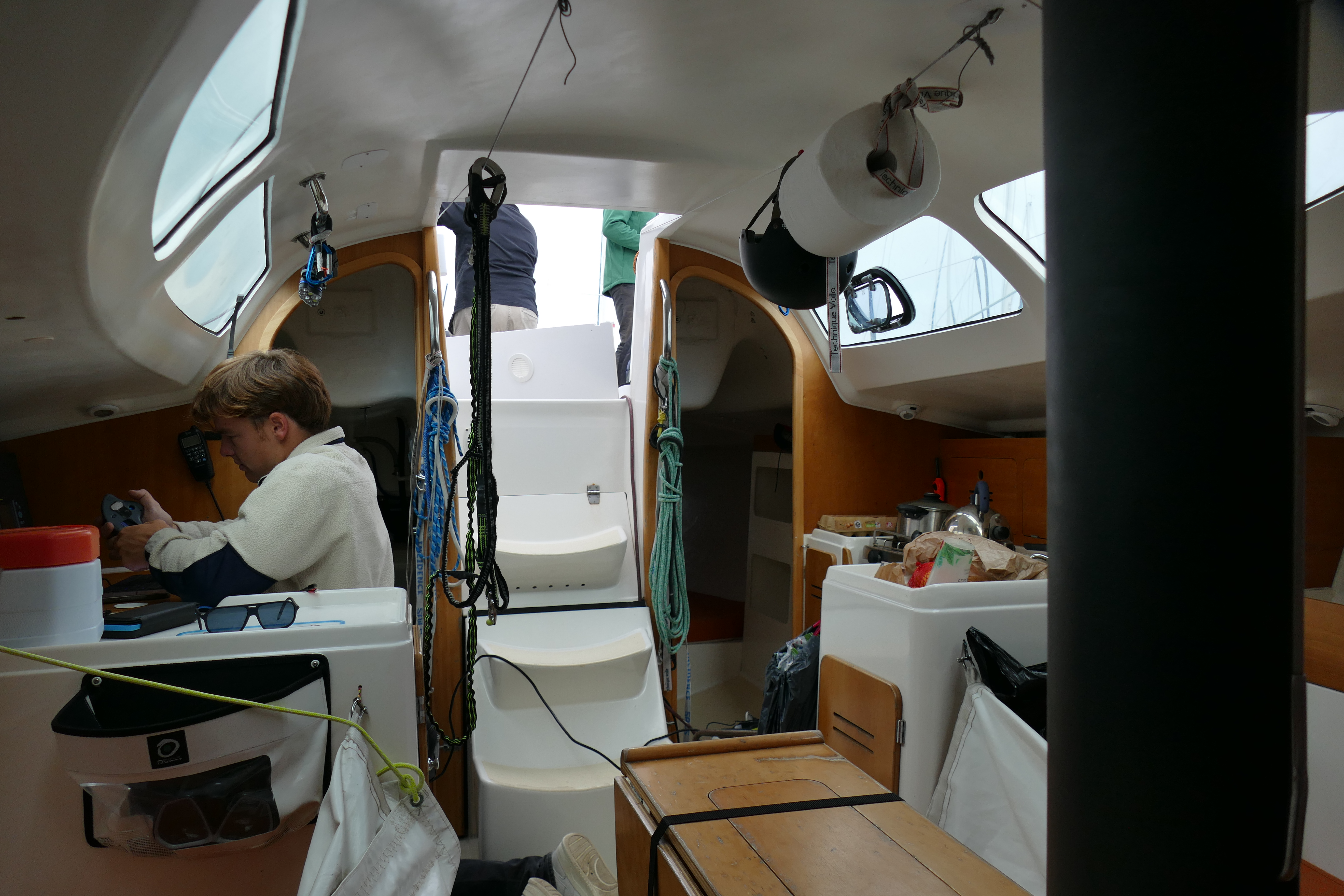 Franck au coin Nav en train de rentrer les points des zones à éviter sur le parcours. – Photo JM Dean/Voiles écarlates« Passe Partout » au ponton N, Sur la MER contre le CANCER possède son stand sur le village de la course – Photo JM Dean/Voiles écarlates