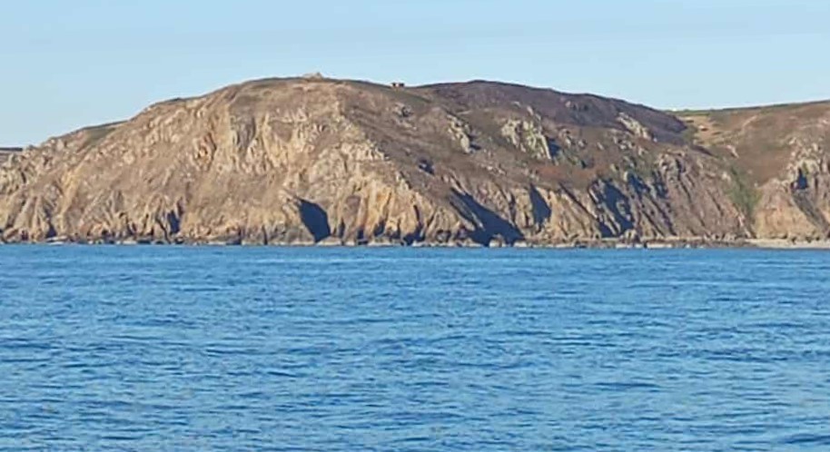 Bientôt les côtes de la Hague sont en vue et l’on peut distinguer les traces de l’incendie ayant ravagé la lande au niveau du Nez de Jobourg.