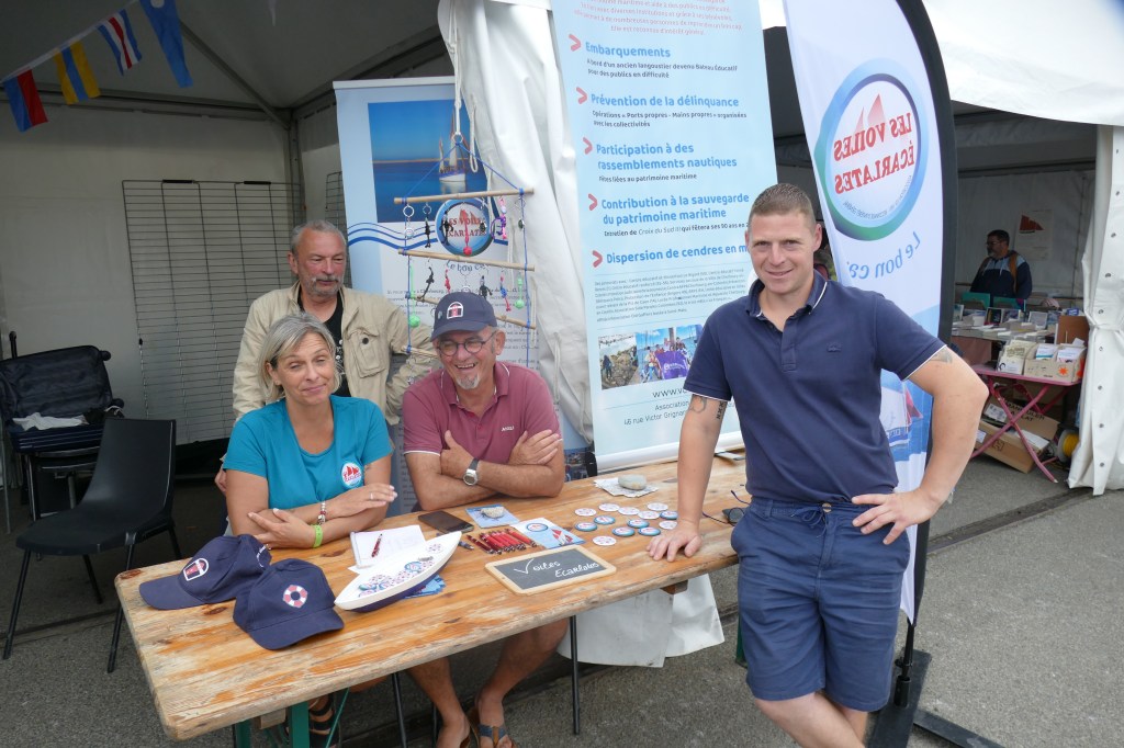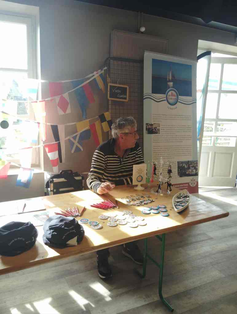 C’est aussi l’occasion de faire connaître les actions de notre association. Ci-dessous, le stand au musée – atelier de Barfleur avec ici Stéphane Henry dit « Plock ».