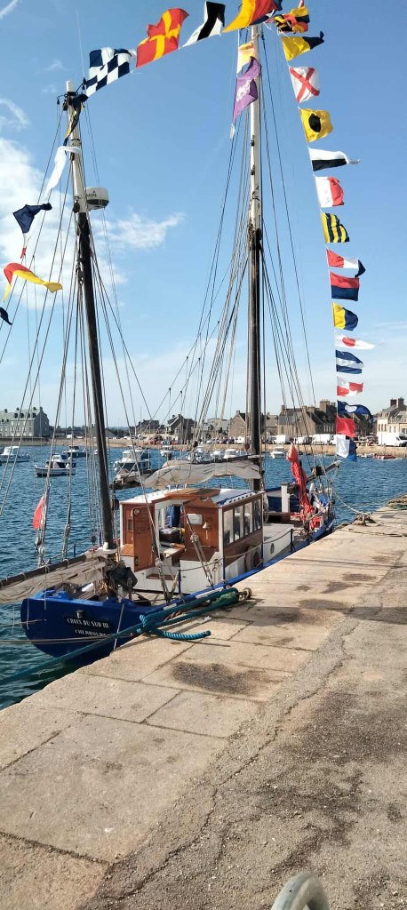 17h20 La Croix du Sud III amarrée au quai Nord Granville entre Lun II et L’Albatros ayant à couple La Crevette et Annick de l’Association des Vieux Gréements Granvillais.