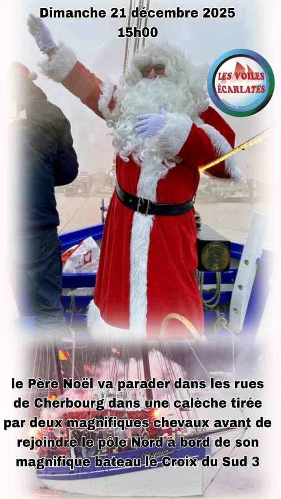 Traditionnellement, au mois de décembre, la Croix du Sud III embarque un passager de marque. Cette année le Père Noël prendra place à bord pour regagner les hautes latitudes là-bas vers le Nord de l’Europe. Nul doute que le public cherbourgeois et en particulier les enfants seront au rendez-vous pour saluer l’homme en rouge.
