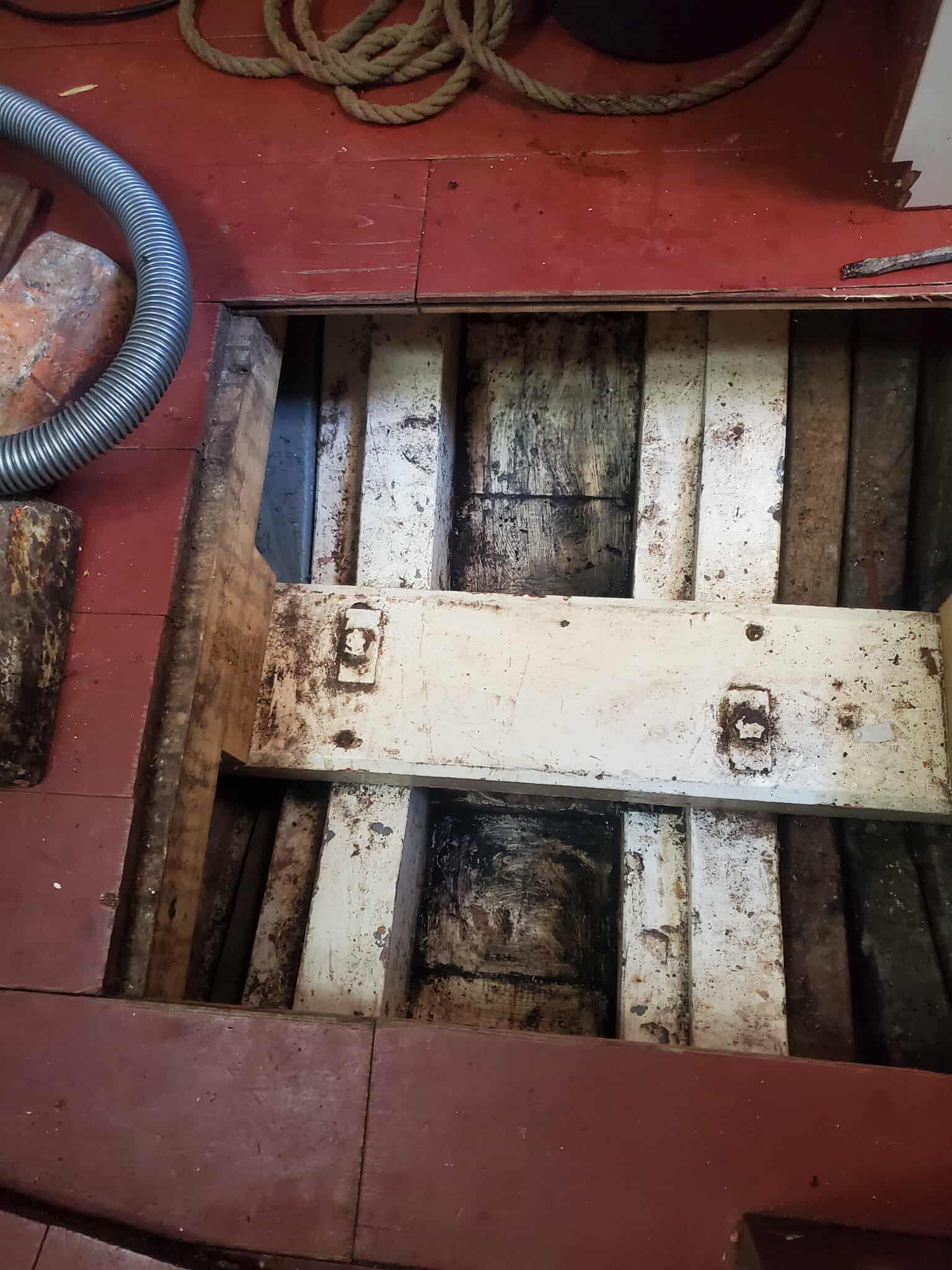 Hier jeudi, une quinzaine de gueuses de l’arrière du carré ont été déplacées vers la cabine avant. Les mailles inspectées dans ces zones ont montrées un bois sain.