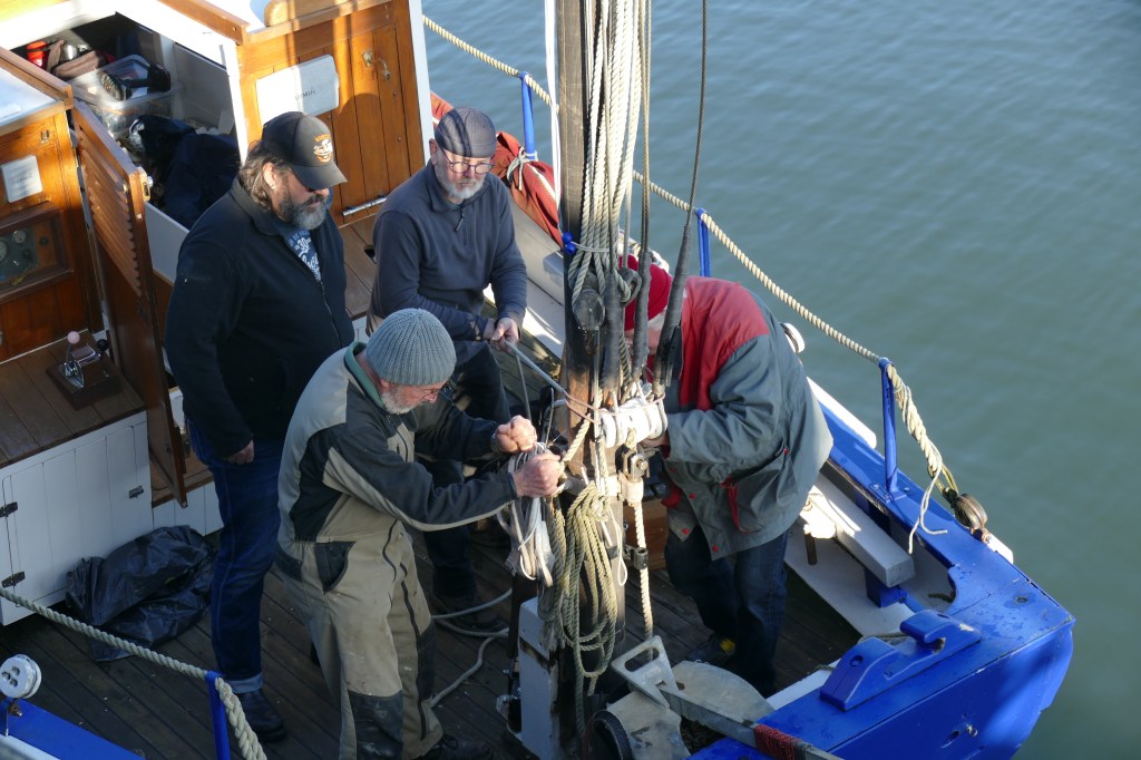 le grand mât a donc été sorti de son emplanture, permettant ainsi à la pièce de 20 francs de 1934 (année de construction du bateau) de retrouver une seconde fois le jour pour quelques temps.