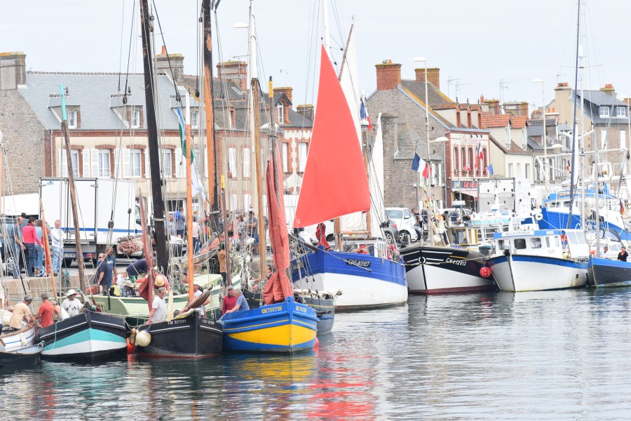 Nous envoyons les flêches en faisant route vers les basses de rénier puis les équets défilent à tribord. Dans le raz, le speedo indique une pointe à 9,7 noeuds sur le fond, tout dessus et moteur à 1200 tours pour garantir notre arrivée devant l’ancien Barfloþ, haut lieu d’escales dans les temps médiévaux. A notre droite défilent les cailloux de Quilleboeuf, funeste endroit pour la blanche nef qui sombrera sur ce récif en 1120 avec à son bord une partie de l’aristocratie anglo-normande. Nous sommes en avance et CDS III patiente devant l’entrée du chenal puis Serge vient à notre rencontre. Il est midi, on embouque le chenal vers l’entrée où déjà sur le quai proche de l’église se pressent de nombreux badauds. Le quai Chardon est occupé, le canot de la SNSM sort et une place est disponible devant Le Grand Lejon. Le lougre du Légué à rentré son bout dehors, nous nous amarrons devant lui…