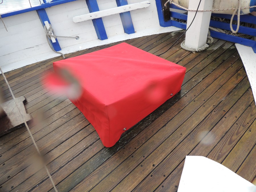 Le père Noël n’a pas oublié la Croix du Sud III. Il a missionné ses deux collaborateurs, Pascal et François, barbus comme lui, pour venir installer cet après midi des capots étanches rouges (en harmonie avec les tauds de misaine et de tapecul) sur le panneau avant et la claire-voie du carré. Du beau travail !