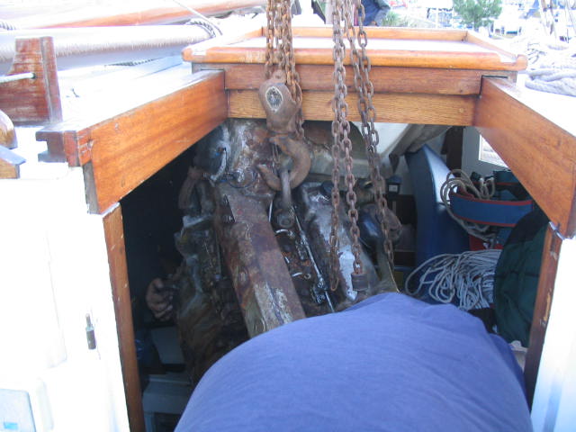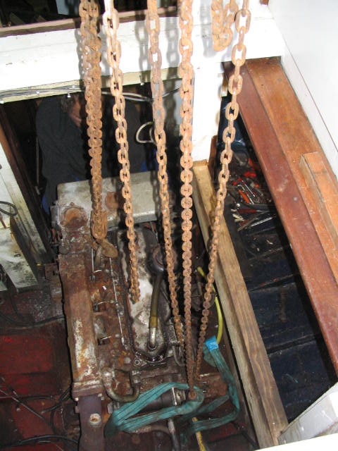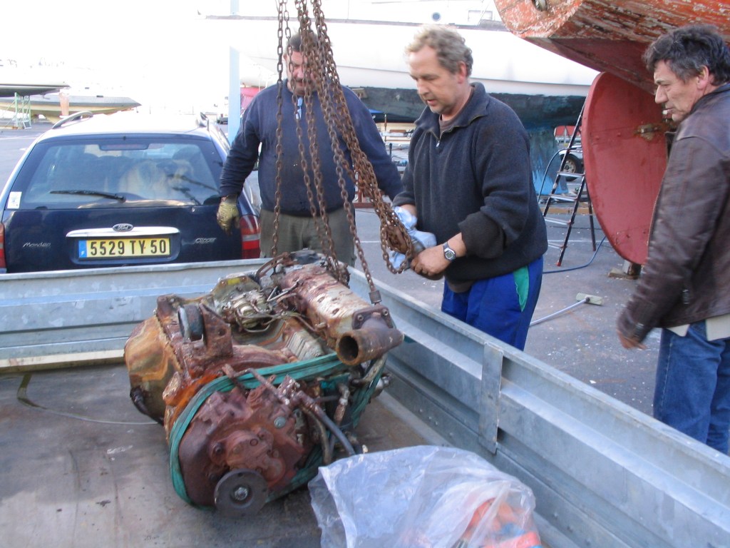 Travaux CDS III 2/5 – 15 novembre 2007 – Débarquement du moteur, décapage du tableau arrière.