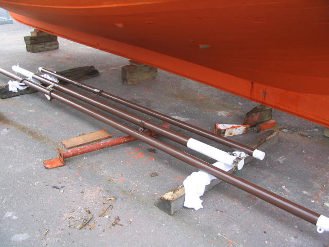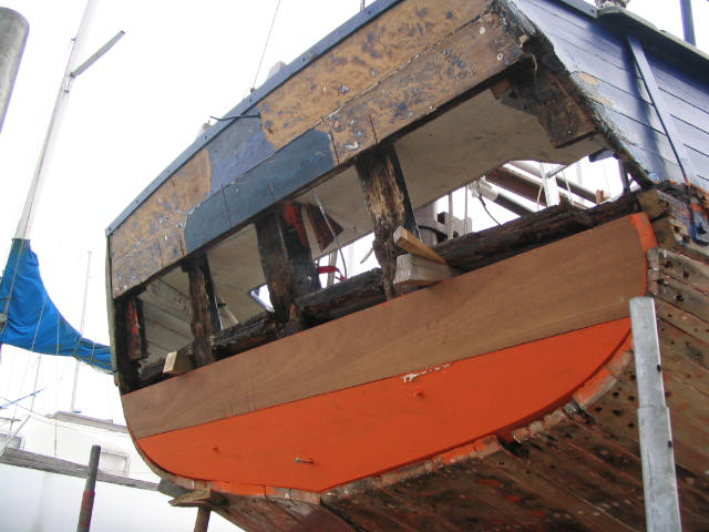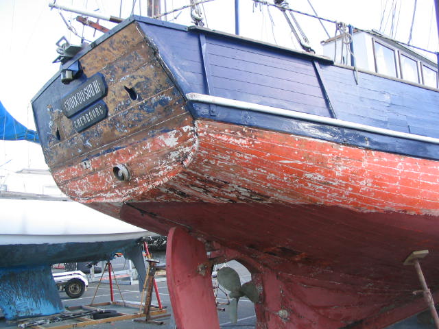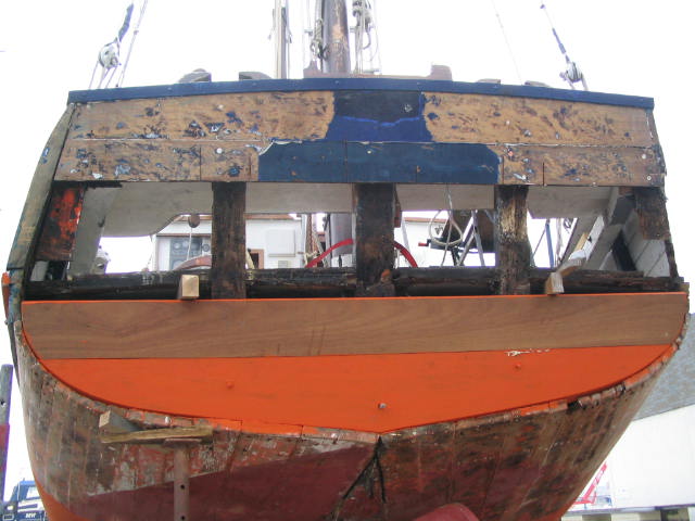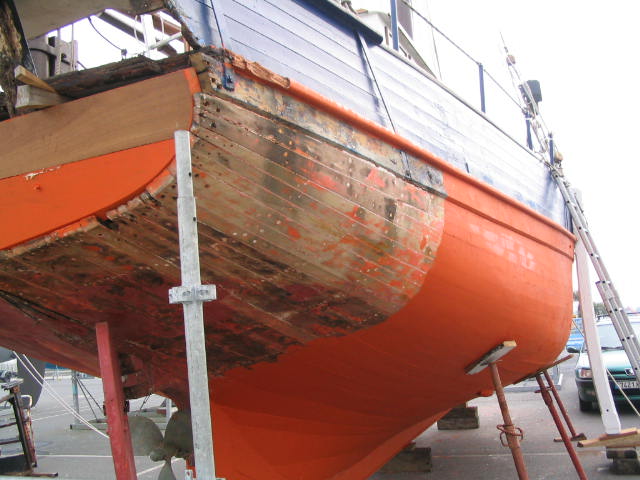 Travaux CDS III 3/5 – 14 février 2008 – Passage oeuvres vives et oeuvres mortes au minium. Ouverture tableau arrière.