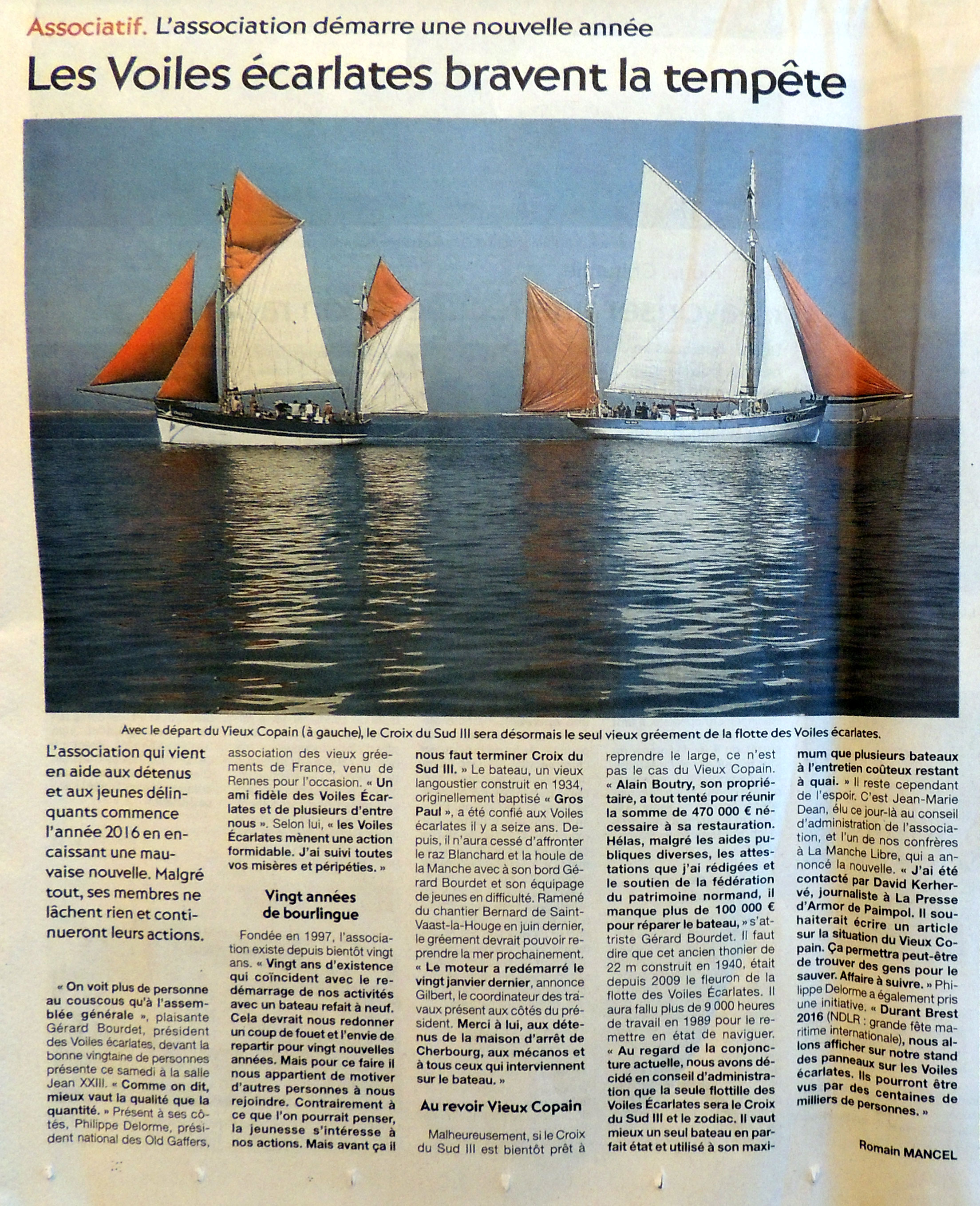 Ancien thonier, ayant rejoint la flotille des Voiles écarlates en 2009, nous ne pouvions dérouler ce fil concernant la Croix du Sud III sans évoquer le Vieux Copain qui devait naviguer de conserve avec elle plusieurs années durant.