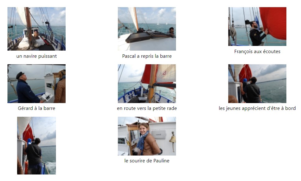 On envoie la misaine et le tapecul est aussitôt établi. Pauline et un groupe de jeunes du Bigard sont à bord. Les averses du matin ont laissé place à quelques embellies qui se dessinent, il ne fait pas froid. Nous sommes samedi, Il y a du monde sur l’eau. Un peu avant d’arriver à la digue du Homet, Gérard me passe la grande barre franche. Je commence à sentir le bateau, on abat un peu pour faire route vers le fort de l’Ouest. Pascal et François règlent les écoutes. Les voiles portent bien d’autant que le vent commence un peu à rentrer. Moteur coupé, la Croix du Sud apprécie cette allure portante. L’étrave commence à chanter. La grande rade est maintenant sous le soleil. Puissant, le bateau gîte légèrement. Il s’ébroue un peu et nécessite une attention constante car très ardent, il demande à venir régulièrement près du vent. Limités par le temps, nous décidons de rester sur rade et un virement lof pour lof est effectué dans le Sud du fort de l’Ouest. Cap sur la vigie du Homet que j’aperçois à travers les vitres de l’abri de navigation. Pauline et les jeunes sont à table. Sur le fond, nous sommes à plus de quatre noeuds. C’est le moment de faire quelques images…