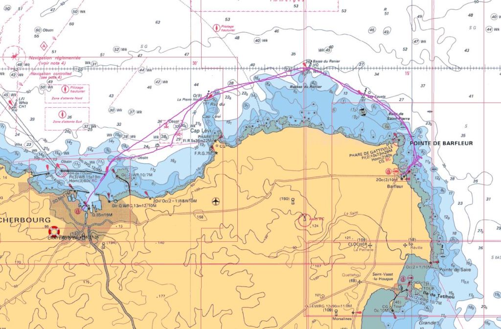07h52 Croix du Sud III sort de port Chantereyne et rapidement GV, foc, trinquette et tapecul sont établis. Vent de 6 noeuds SSW nous filons vers les pierres noires et la cardinale est atteinte à 09h05.