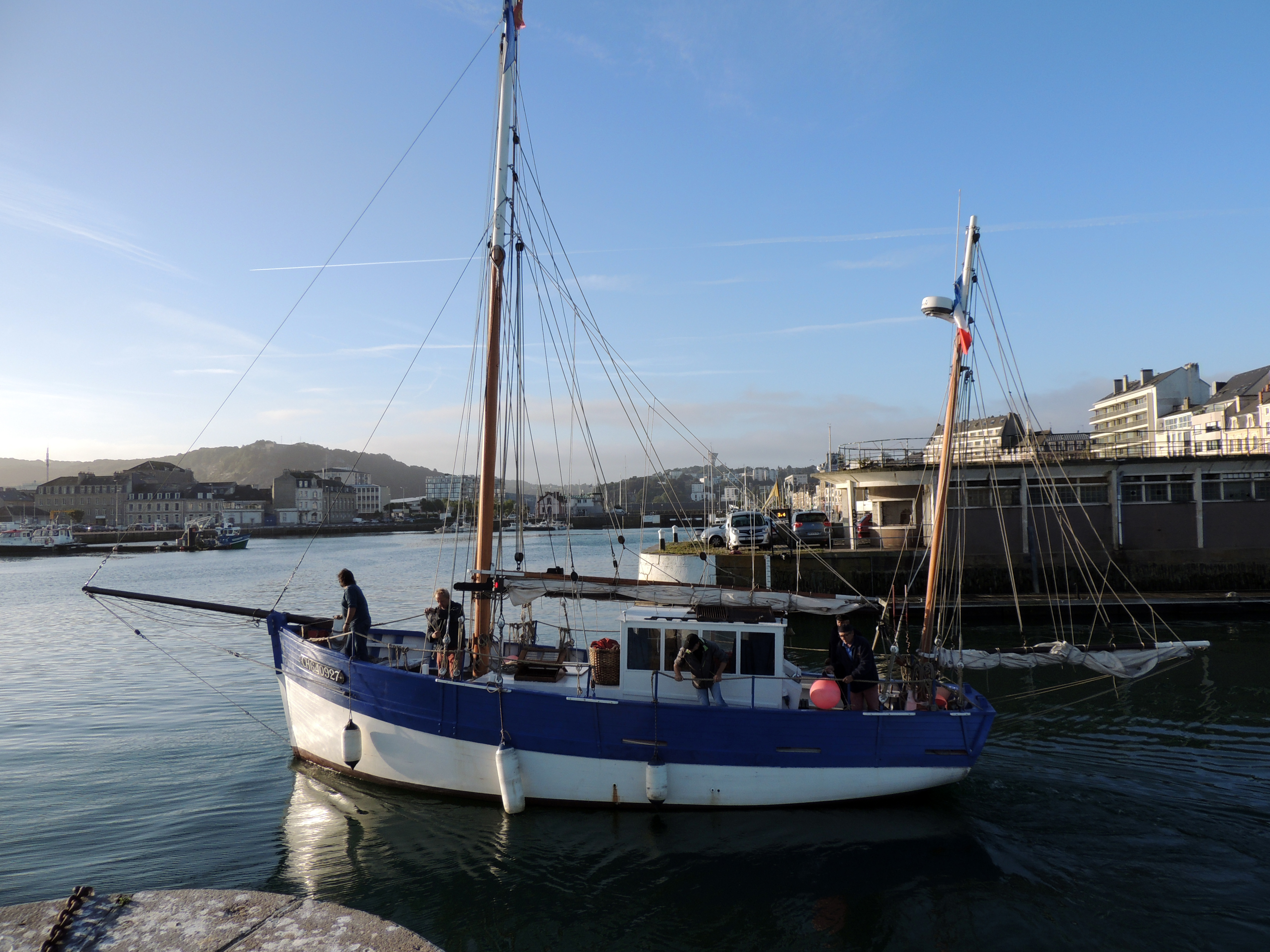 Sortie de la Croix du Sud III au large de Cherbourg avec à son bord cinq jeunes du Lycée Professionnel Maritime et Aquacole Daniel Rigolet encadré par Jean-Pierre Geismar, leur professeur de navigation. Rencontre intergénérationnelle avec l’équipage.