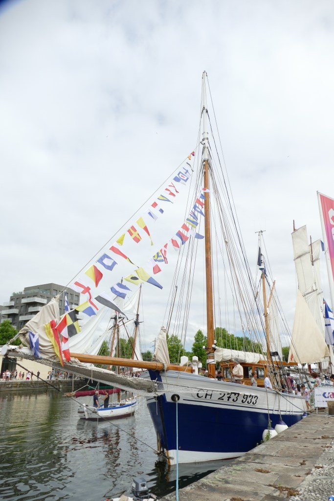 17h20 La Croix du Sud III amarrée au quai Nord Granville entre Lun II et L’Albatros ayant à couple La Crevette et Annick de l’Association des Vieux Gréements Granvillais.