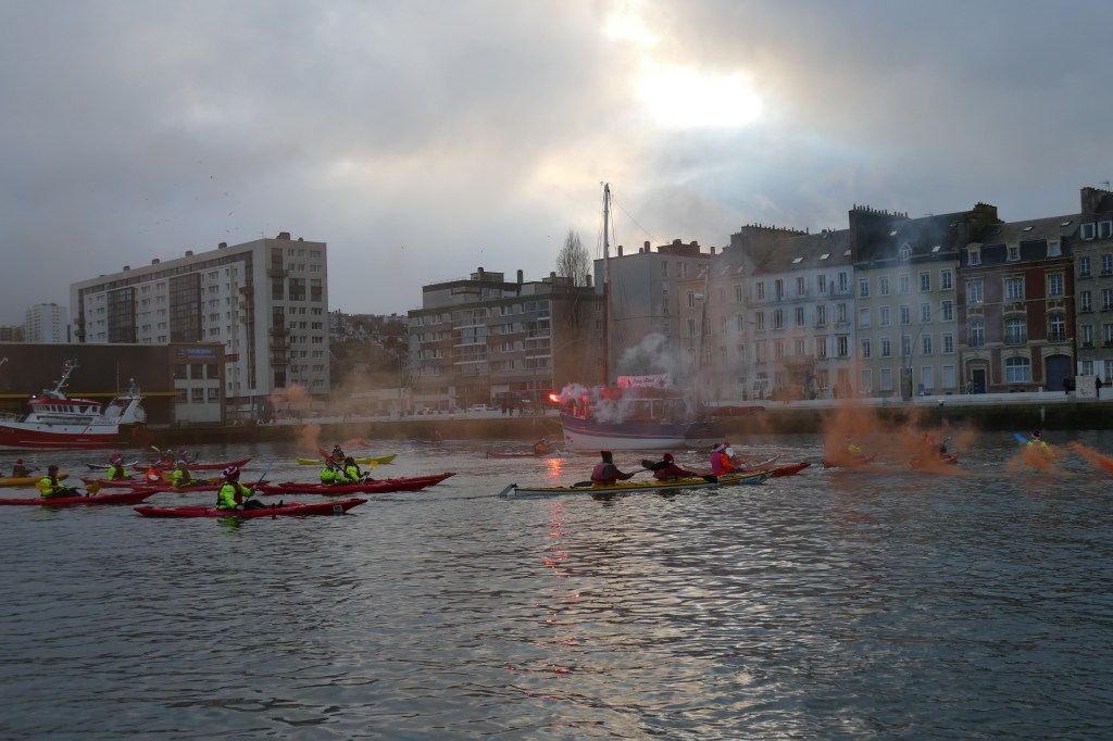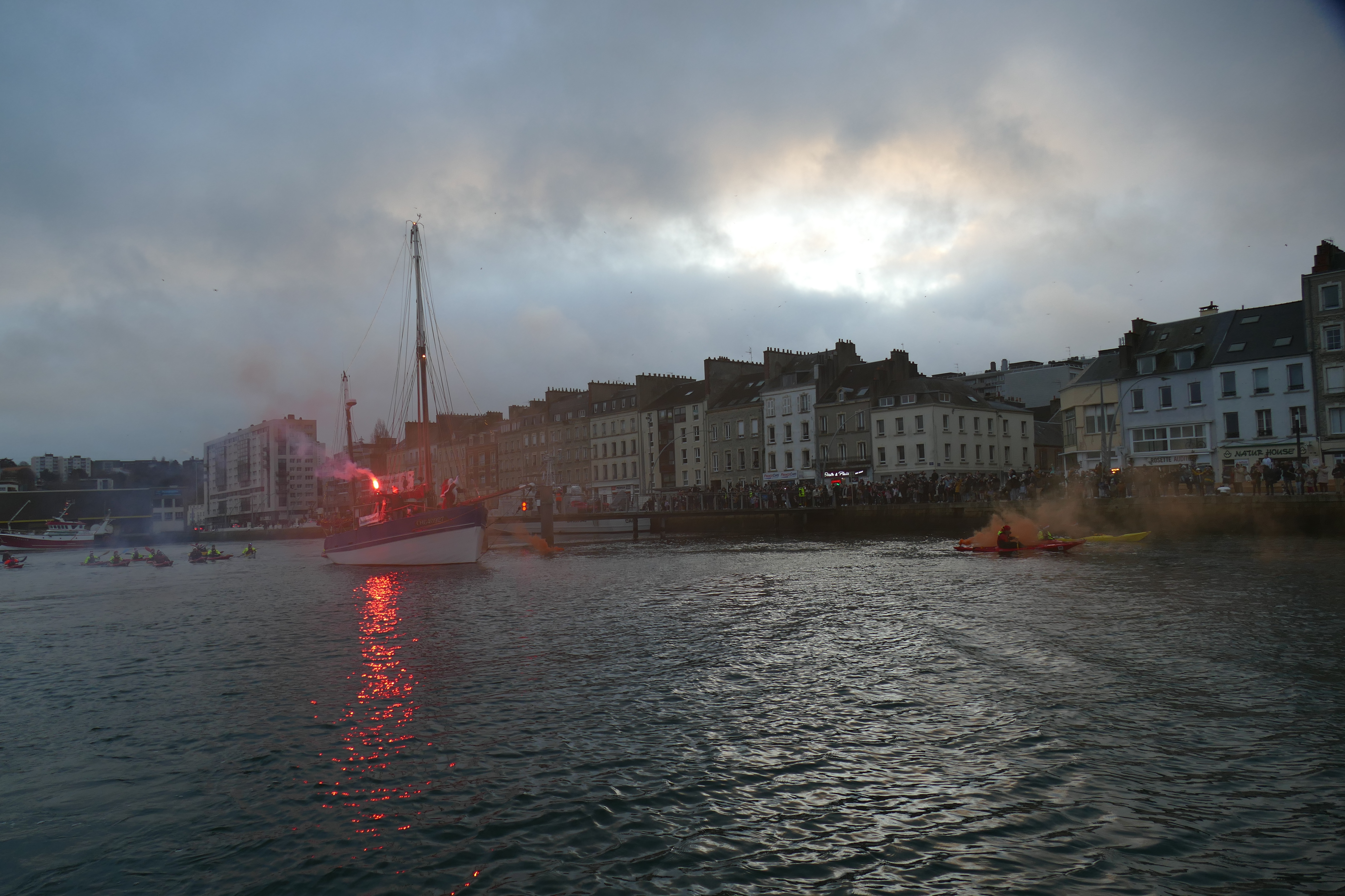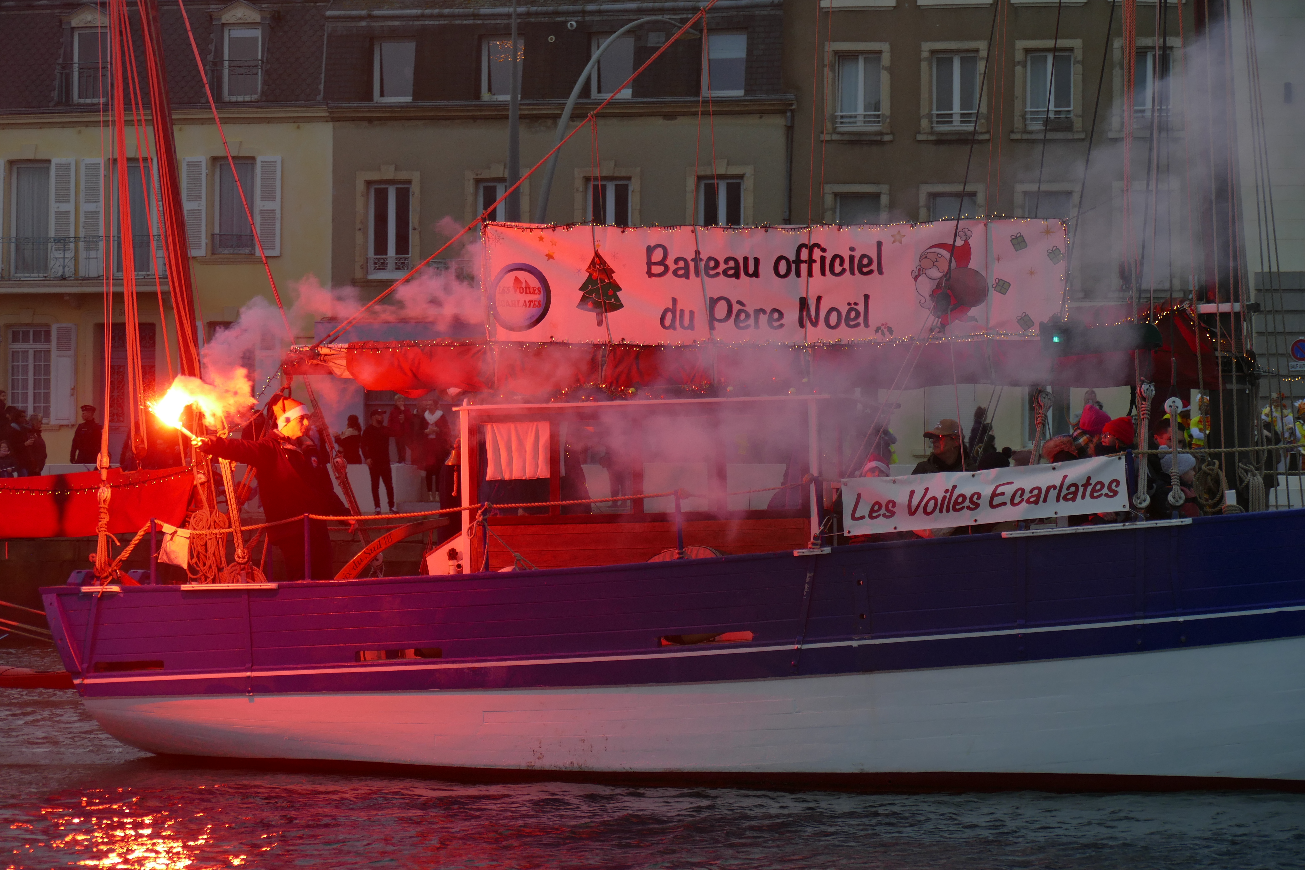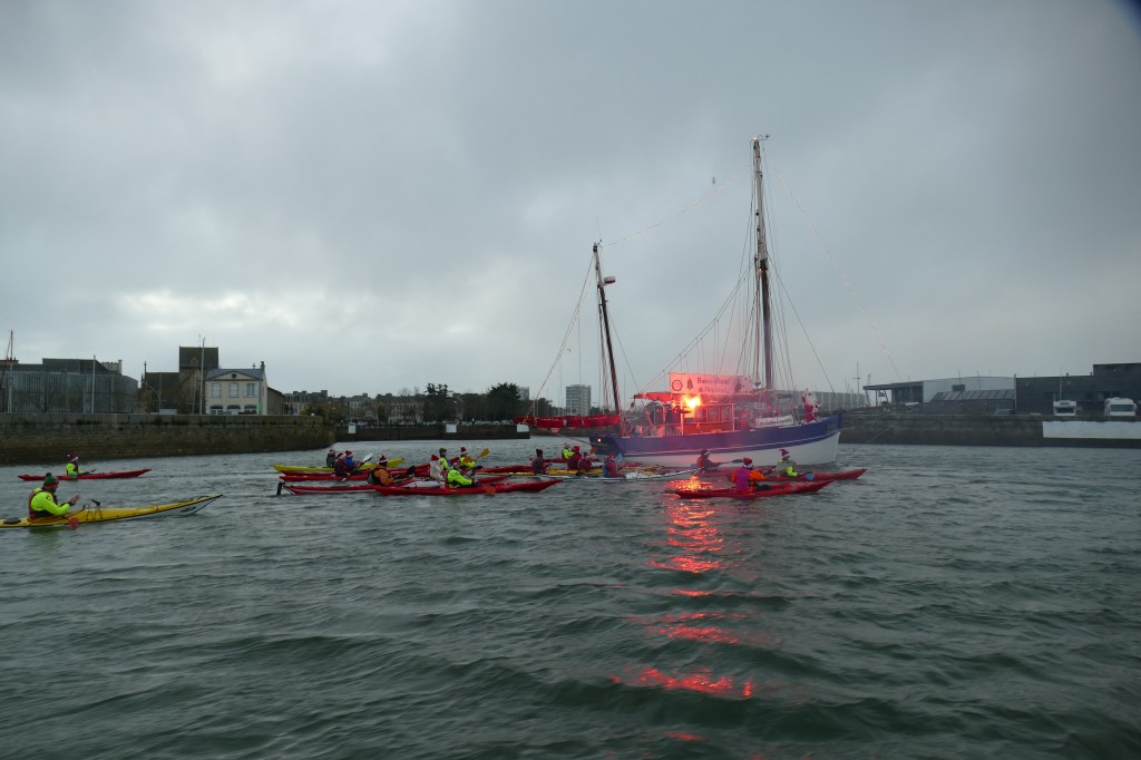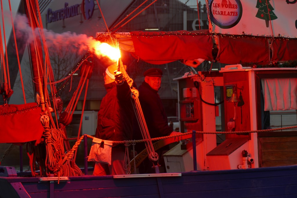 Hier, samedi 23 décembre, il y avait du monde sur les quais autour du bassin du commerce à Cherbourg pour voir embarquer le Père Noël à bord de la Croix du Sud III. Après avoir quitté le ponton de la passerelle Michel Legrand, l’ancien langoustier de Camaret et son illustre passager ont effectué plusieurs boucles dans le bassin en compagnie des lutins – kayakistes avant de se diriger un peu avant 17heures vers l’ouverture du pont tournant et de faire cap vers le Nord, le Père Noël ayant fort à faire du coté des hautes latitudes…