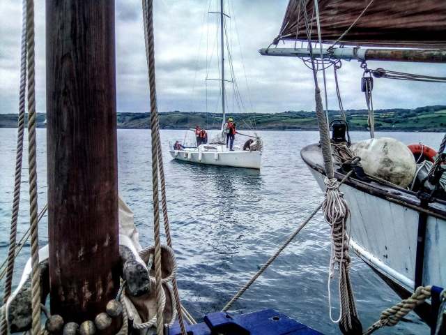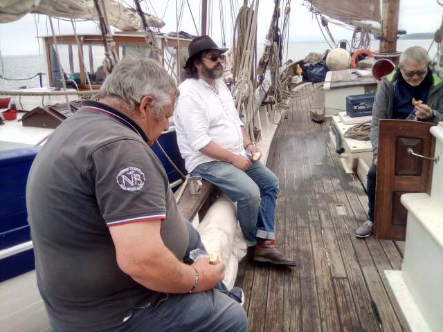 En effet, Patrick, Stéphane et Gilbert notamment sont venus saluer ces jours-ci le capitaine du Lun II qui a amarré dans le bassin du commerce aux fins d’avitaillement la magnifique galéasse norvégienne construite à ålesund en 1914. Ces retrouvailles ont particulièrement ému Ulysse qui, à son tour, a embarqué récemment à Granville quelques jeunes en difficulté. L’aventure continue aussi à bord de Lun II.