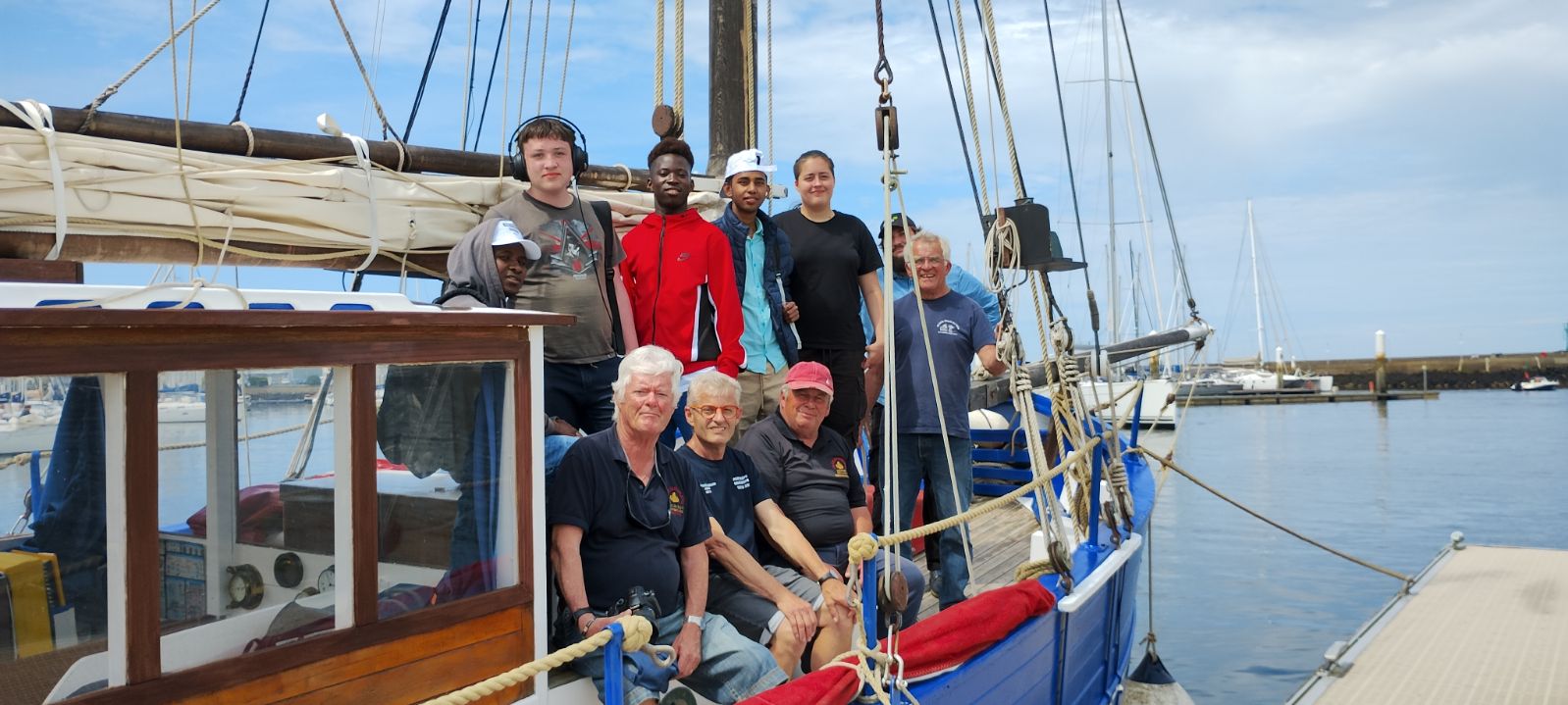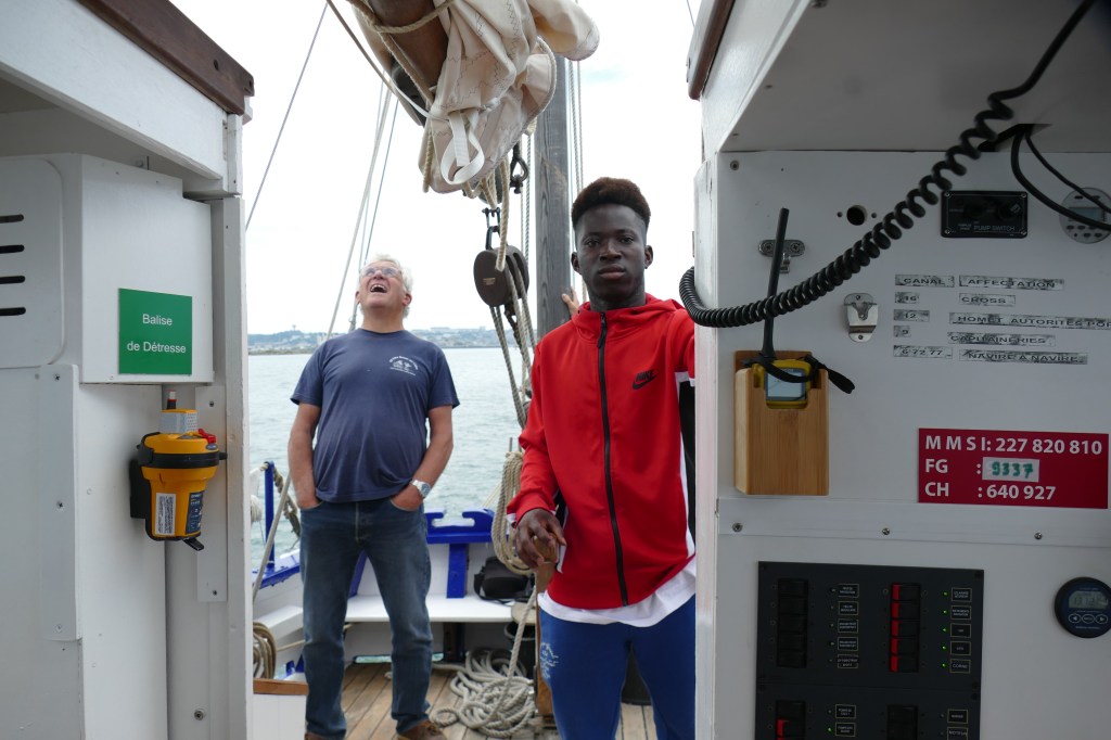 Jeudi 18 juillet, c’était au tour de Mijanur, Nouh, Allassan, Anoëlle, Hugo et Jordan de monter à bord, accompagnés cette fois de Marin, leur moniteur, pour retrouver l’équipage du jour : Gérard, Francis, Thierry et Jean-Marie.