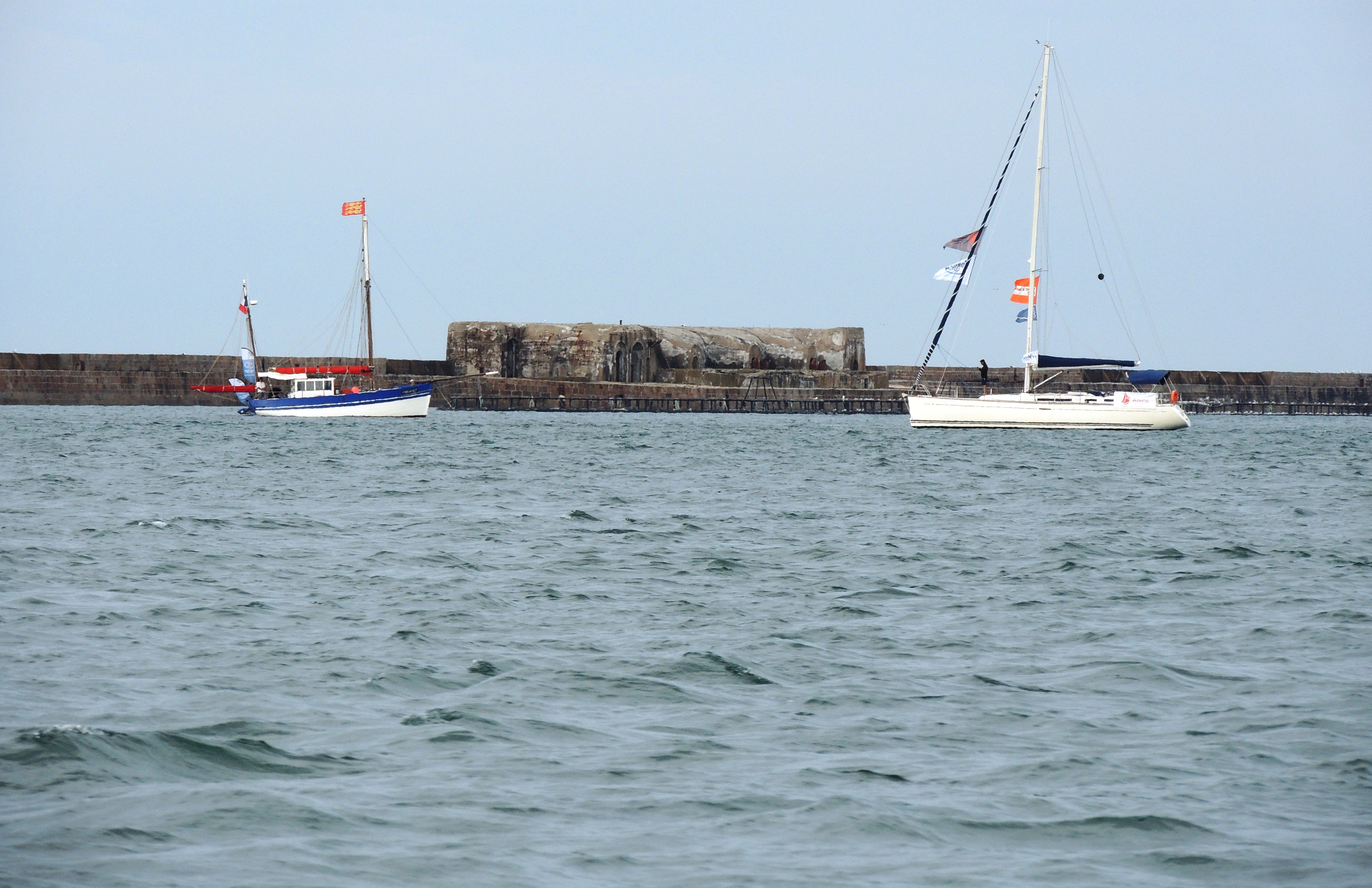 Vers 14h00, tous les skippers étaient en attente de l’aperçu précédent le départ de la régate de 10 nautiques prévue au large de Cherbourg avec une arrivée devant être jugée entre le fort de Chavagnac et le fort de l’ouest. Le manque de vent a contraint le comité de course a annuler la régate et l’ensemble de la flotte est revenu en parade vers la passe de l’est.