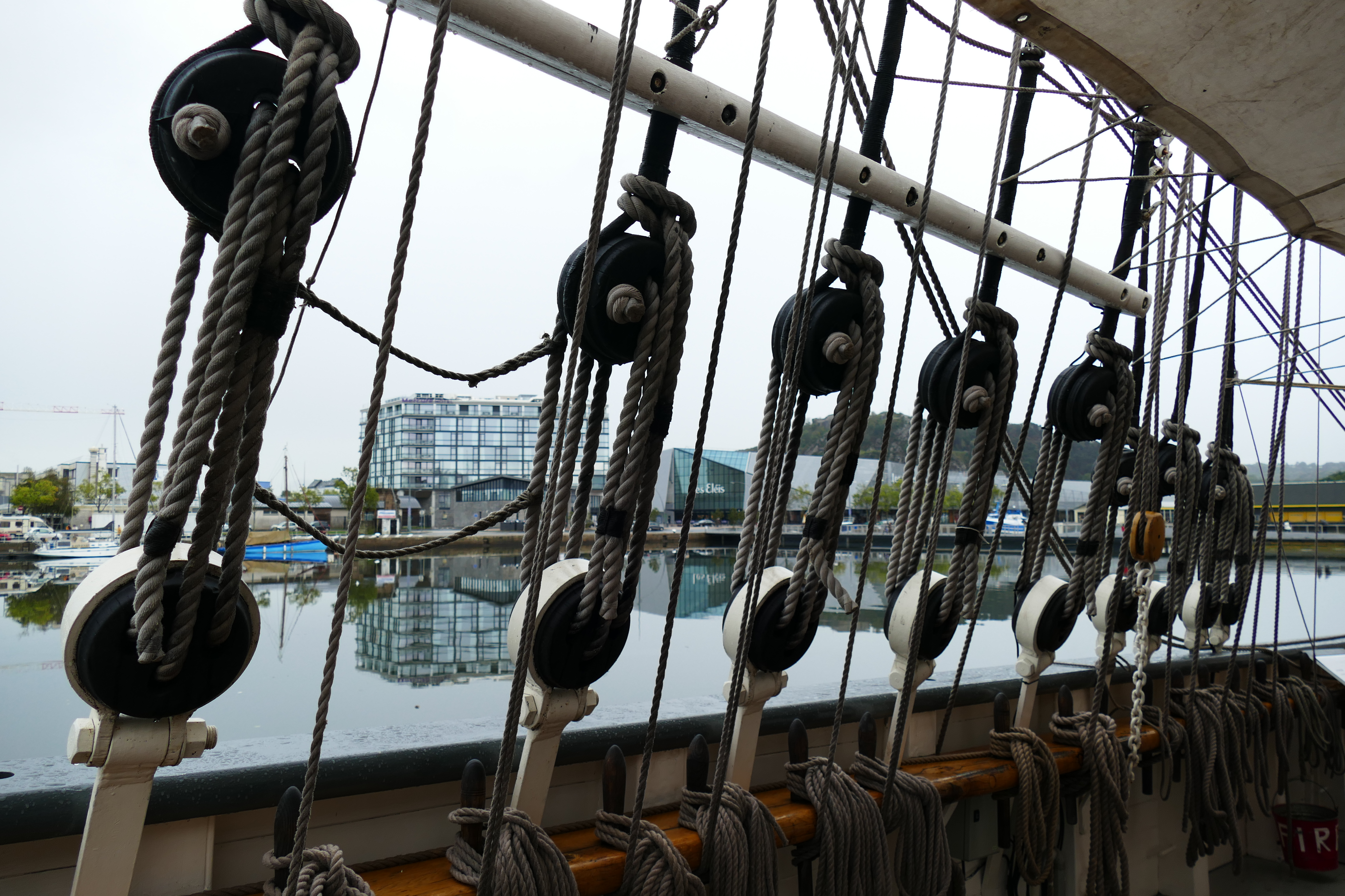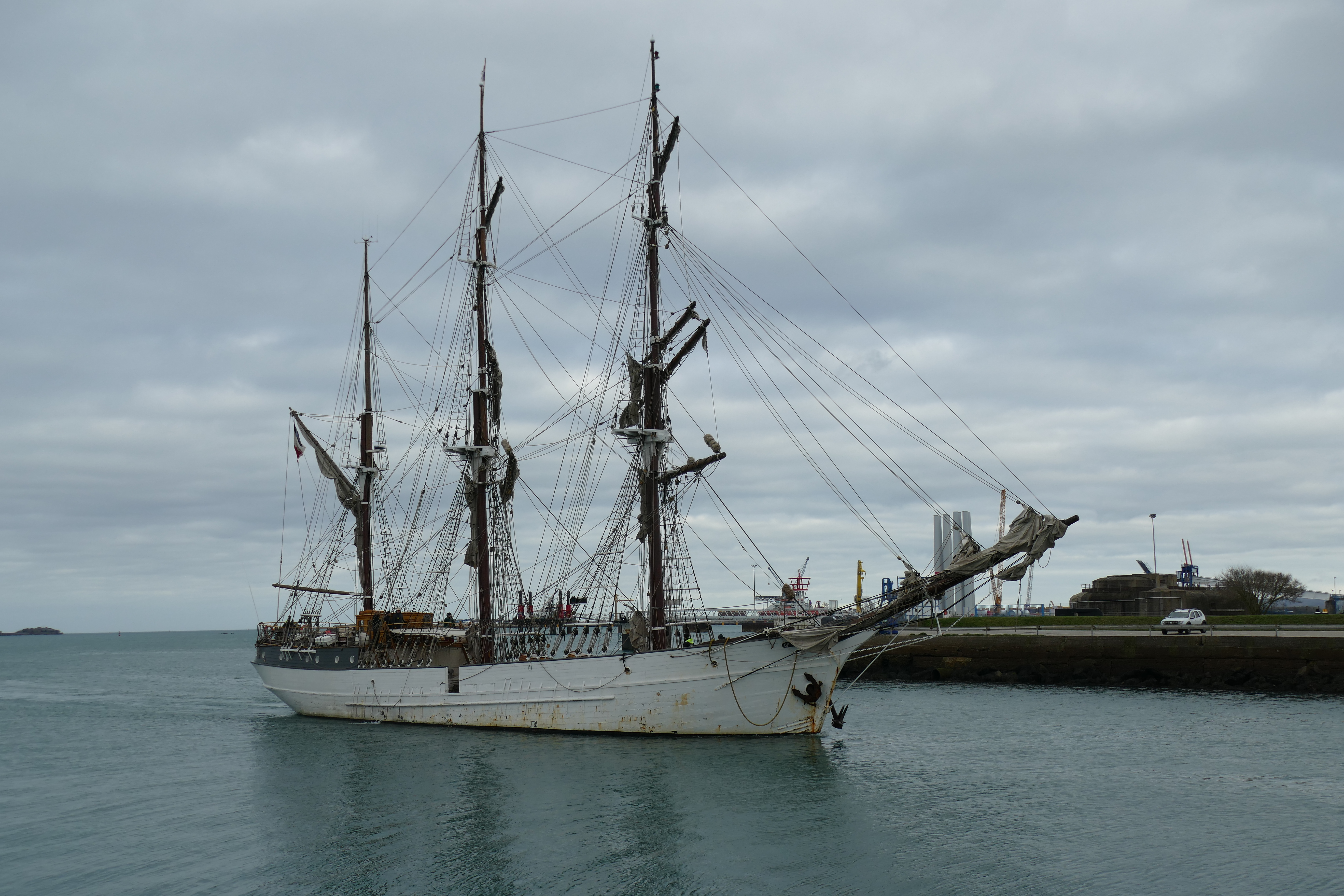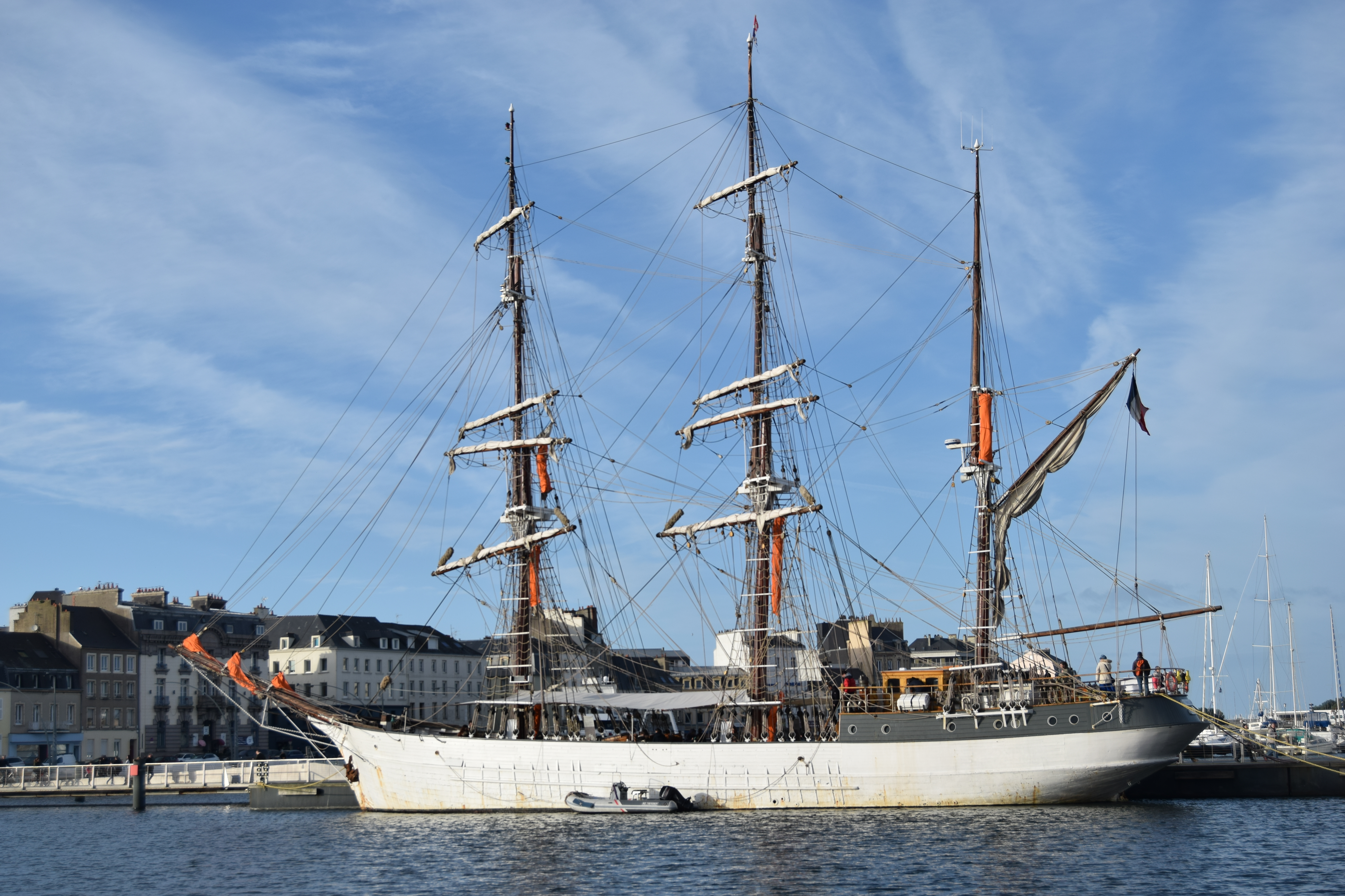 28 septembre 2018 l’Ex Kaskelot , magnifique trois mâts barque d’origine danoise, devient Le Français à Saint Malo. Bob nous invite à bord.