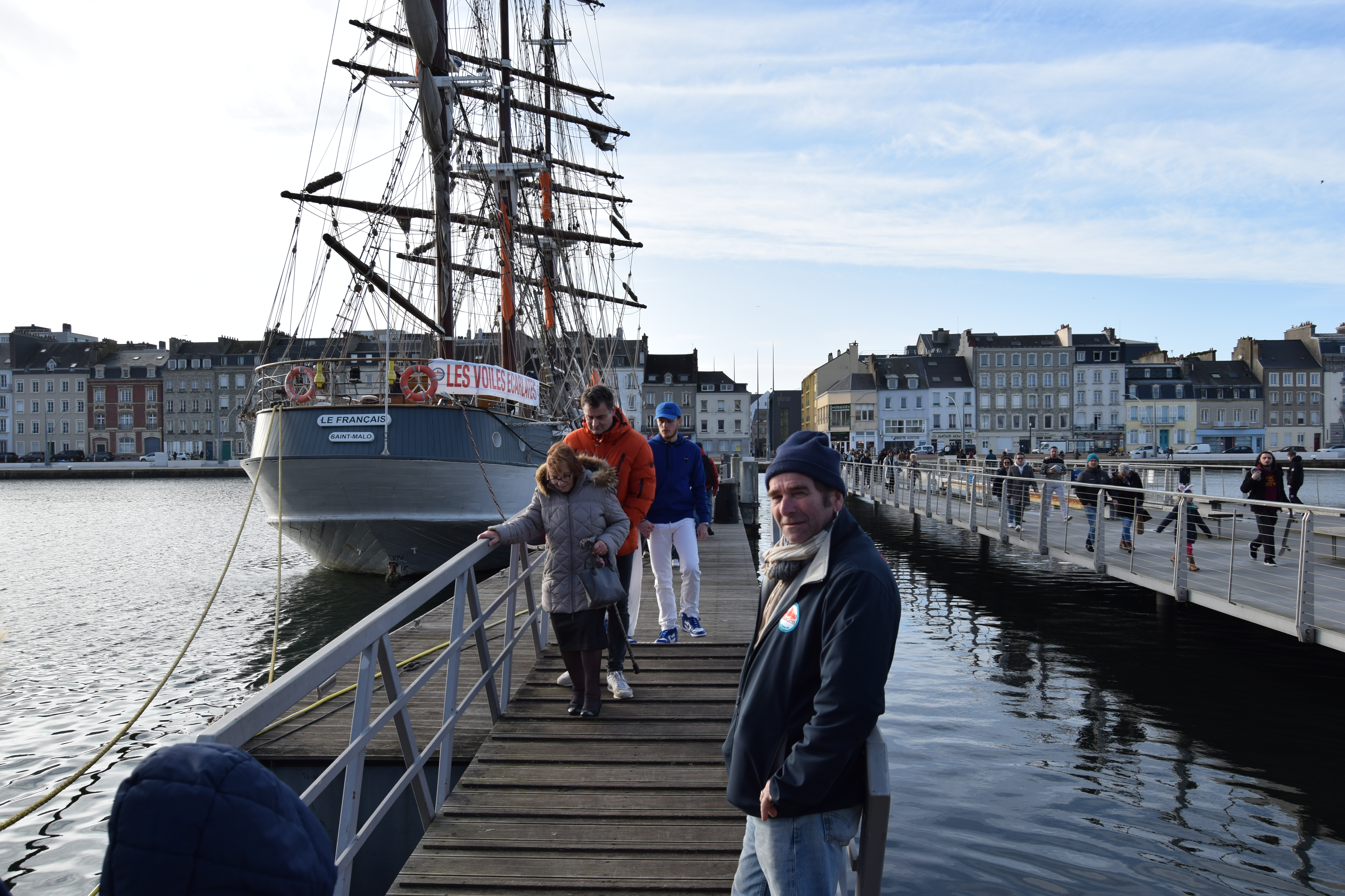 16 octobre 2019 En escale à Cherbourg, patronné par Benjamin Hardouin, que Gérard a connu lorsqu’il avait…15 ans, Le Français s’apprête à faire route vers Le Havre. A son bord, prendrons place Gérard et Pascal notre bosco, le projet évoqué plus haut se concrétisera dans un avenir proche : le public en difficulté des Voiles écarlates pourra prochainement bénéficier enfin d’un grand voilier pour se reconstruire, car, comme l’affirme souvent Gérard « la mer est éducatrice ».