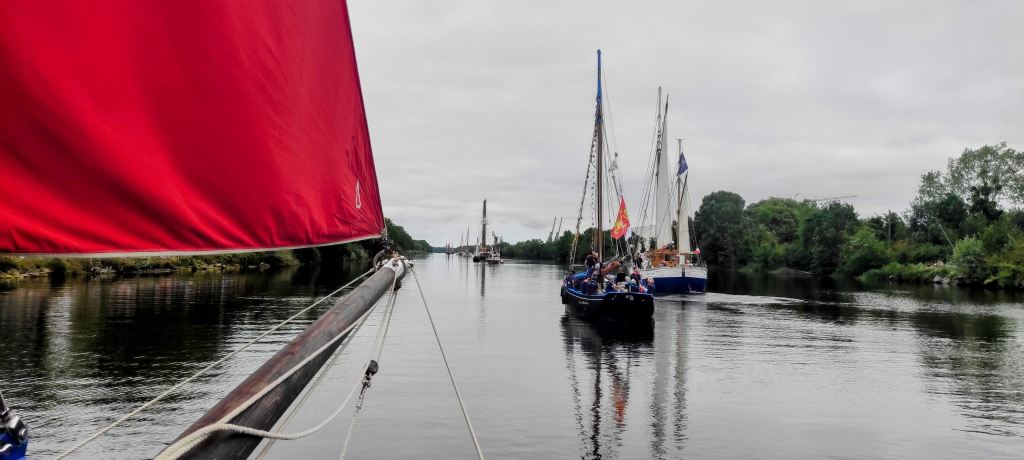 Dimanche 29 juin 10h00 La Croix du Sud III a quitté son poste d’amarrage dans le bassin St Pierre de Caen, sous G.V. tapecul et foc, pour effectuer la descente du canal vers Ouistreham. A son bord Dom le patron, Pascal le bosco, Jacques, Jean-Louis, Serge et Lionel.