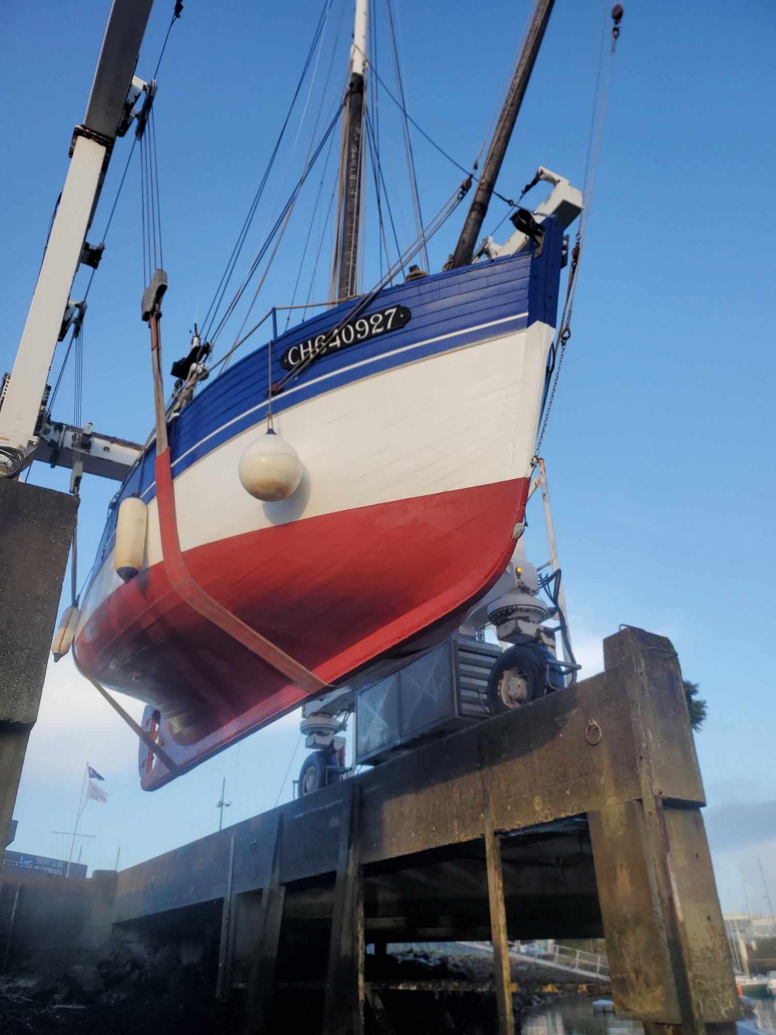 Vendredi 8 décembre, la Croix du Sud III a été remise à l’eau à port Chantereyne Cherbourg. l’Ancien langoustier de Camaret, désormais équipé de son nouveau moteur, bénéficie toujours des bons soins de Mécanique Marine de St Vaast.