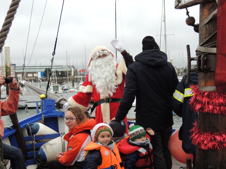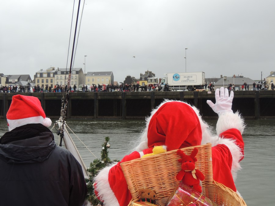 Hier, samedi 23 décembre, il y avait du monde sur les quais autour du bassin du commerce à Cherbourg pour voir embarquer le Père Noël à bord de la Croix du Sud III. Après avoir quitté le ponton de la passerelle Michel Legrand, l’ancien langoustier de Camaret et son illustre passager ont effectué plusieurs boucles dans le bassin en compagnie des lutins – kayakistes avant de se diriger un peu avant 17heures vers l’ouverture du pont tournant et de faire cap vers le Nord, le Père Noël ayant fort à faire du coté des hautes latitudes…